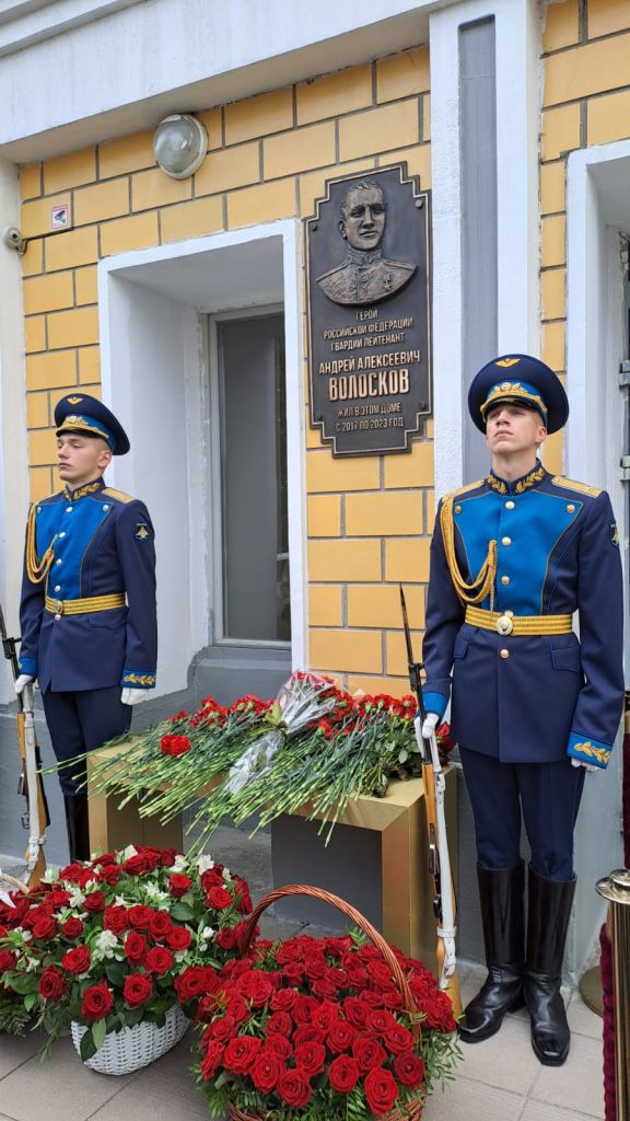 Сегодня, 4 сентября, в Хорошевском районе г. Москвы на улице Полины Осипенко, дом 8, корпус 2 была открыта мемориальная бронзовая доска Герою России гвардии лейтенанту Волоскову Андрею Алексеевичу, который участвовал в специальной военной операции на территории Украины и героически погиб при выполнении боевого задания. Даже имея тяжелейшие ранения, молодой офицер продолжал командование боевой группой… За мужество, отвагу, самоотверженность Волоскову А.А. было присвоено высокое звание Героя России! Посмертно.